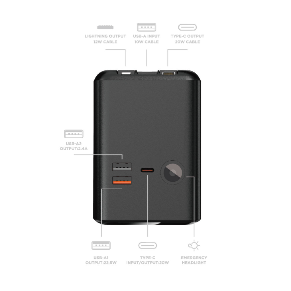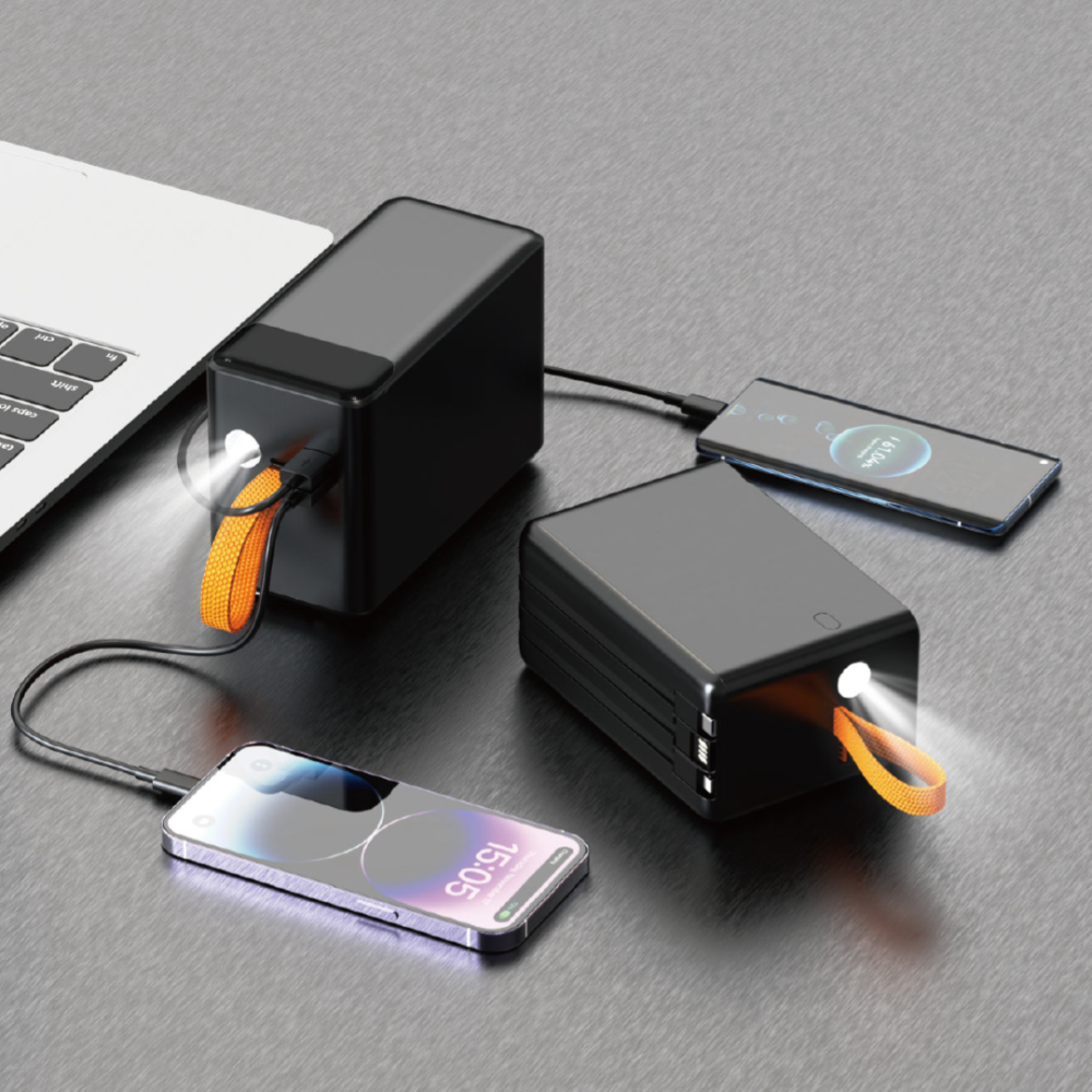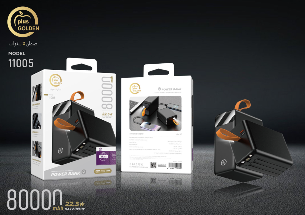 احتفظ بأجهزتك مشحونة طوال اليوم مع باوربنك بسعة 80,000mAh مزوّد بالكيابل المدمجة وثلاثة منافذ شحن. مزوّد أيضاً بإضاءة عملية، ليكون الرفيق المثالي للسفر، العمل، أو الاستخدام اليومي.