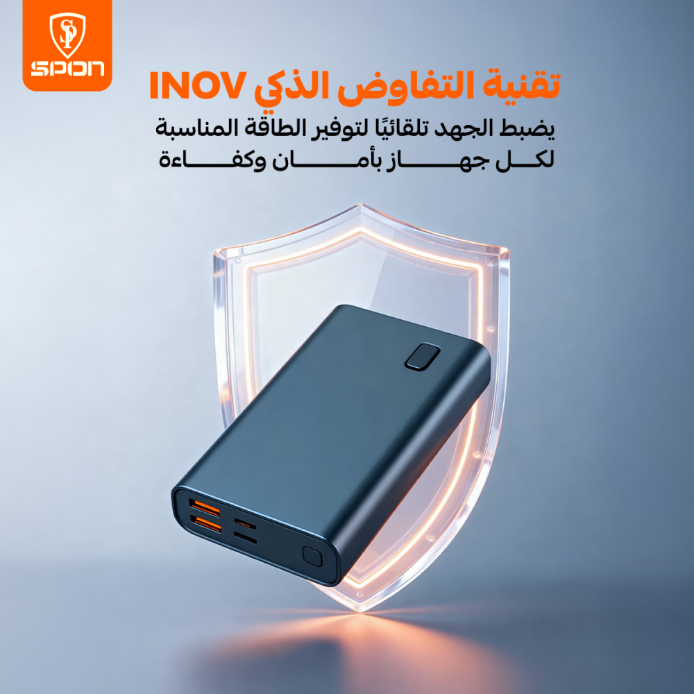 حماية ذكية ضد الشحن الزائد، الحرارة والفولتية العالية.
