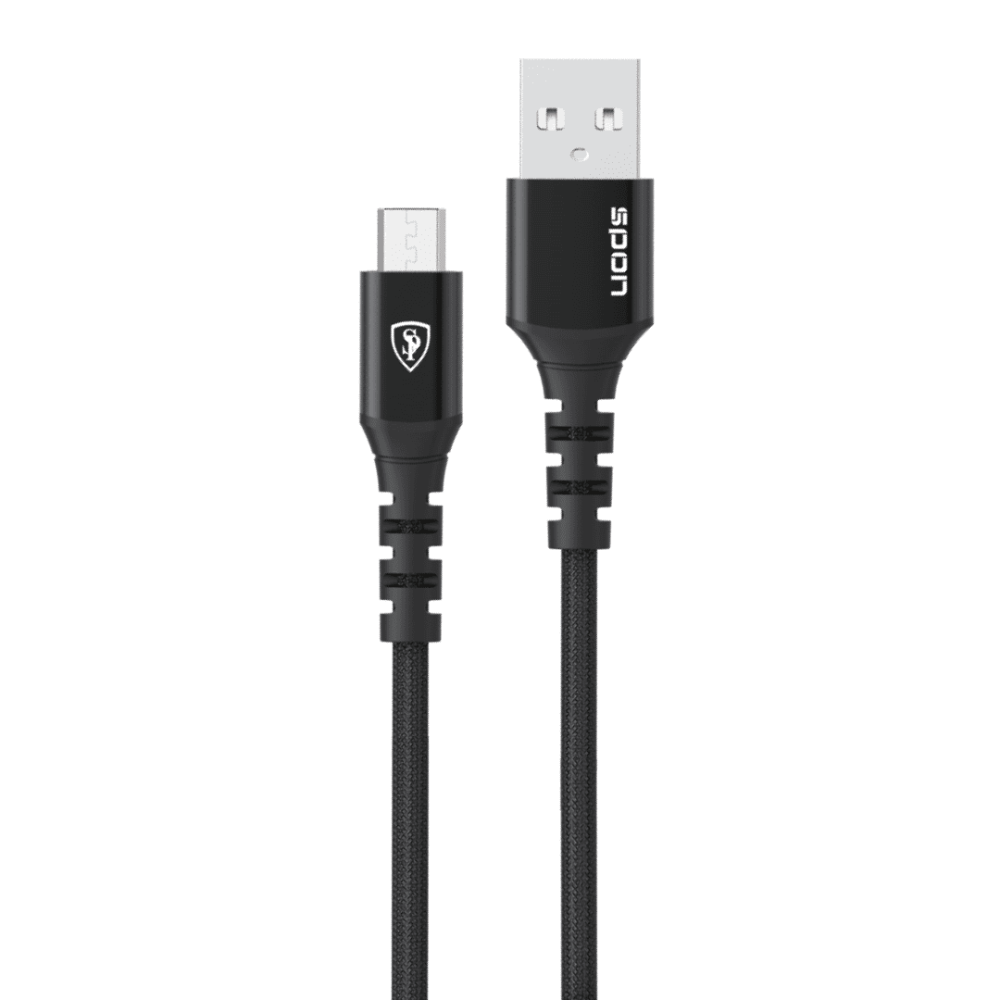 سلك شاحن مايكرو USB من SPON باللون الأسود مصنوع بقماش مقاوم للقطع، يوفّر شحن سريع وآمن لأجهزتك، مع متانة عالية لتحمل الاستخدام اليومي.