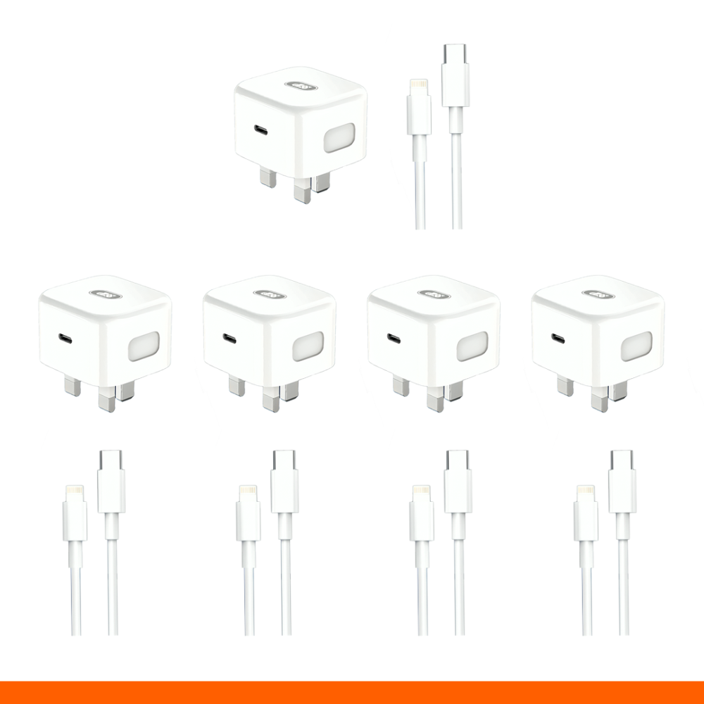 استمتع بالشحن السريع والآمن لجميع أجهزة آيفون مع عرض Powerza الذي يشمل 5 شواحن قوية بقدرة 27 واط، مزودة بكل كيبل خاص بها لتوفير شحن فوري وفعال في أي مكان.