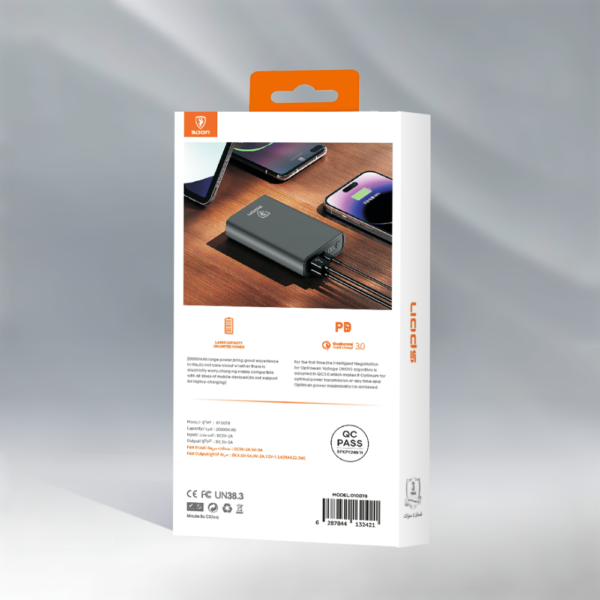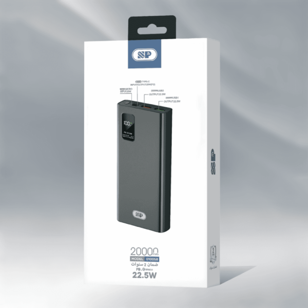 باور بنك 20000 22.5W(منفذ PD 18W+منفذين USB)مع شاشة